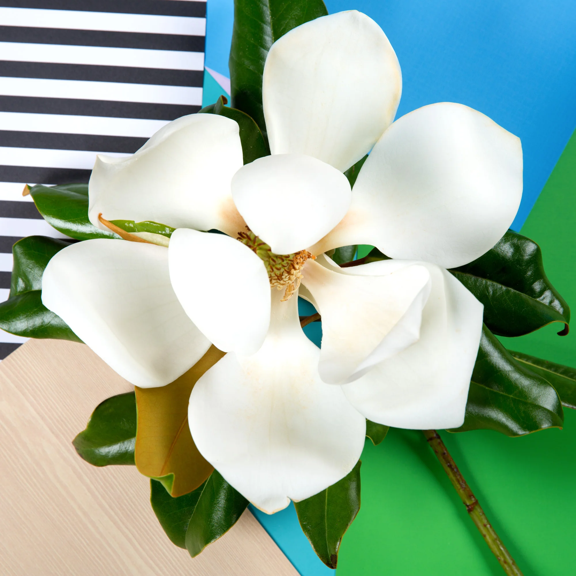 (above, center) Fresh magnolias are total stunners in a vase (or even an empty coke bottle) at your desk. They'll brown and wilt quickly if not kept in water, and will only last a couple days, but since they're in season, you can easily pick one on a lunchtime walk (they're especially easy to find blooming around trees in Los Angeles) and impress everyone in the office with a fancier bloom.