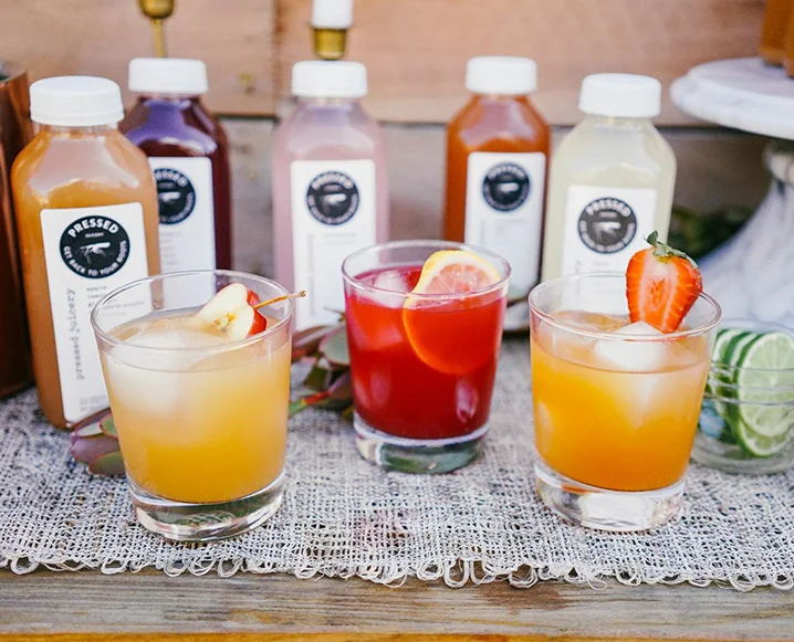 For extra credit, I cut a piece of cardboard the shape of my suitcase lid and spray-painted it with chalkboard paint to write my drink recipes on. You can also find cute mini-chalkboards online or at a craft store. Also consider custom print mason jar labels with your logo or an image for the occasion, and/or line the inside with a pretty kitchen towel in a coordinating color. While everyone else shows up with the ninth bottle of rosé for the evening, revel in your hostess magic as you offer them a cocktail from your suitcase!